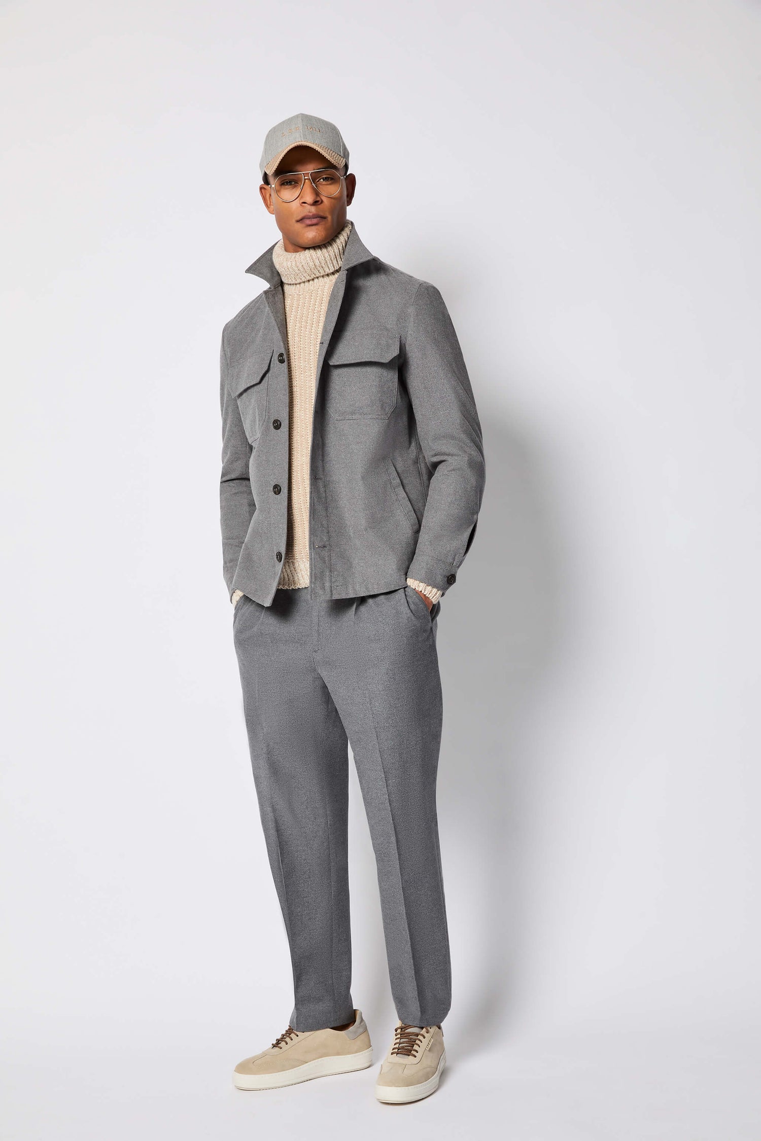 Overshirt da uomo non trattata realizzata in cotone leggermente stretch grigio chiaro melange. Dotata di tasche a scomparsa sui fianchi e di chiusura frontale con bottoni logati L.B.M. 1911 a contrasto, questo capo spicca per morbidezza e rappresenta una valida alternativa alla giacca per le giornata di svago e relax.